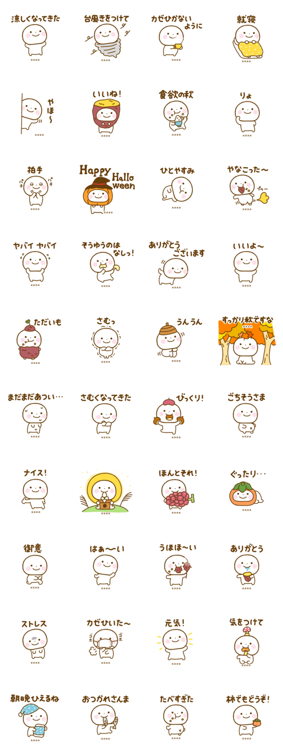 Naoyのゆる~くかわいいスマイルくんの秋に毎日使えるスタンプだよ(*‘ω‘ *)6文字まで自由に名前をかえれるよ♪
