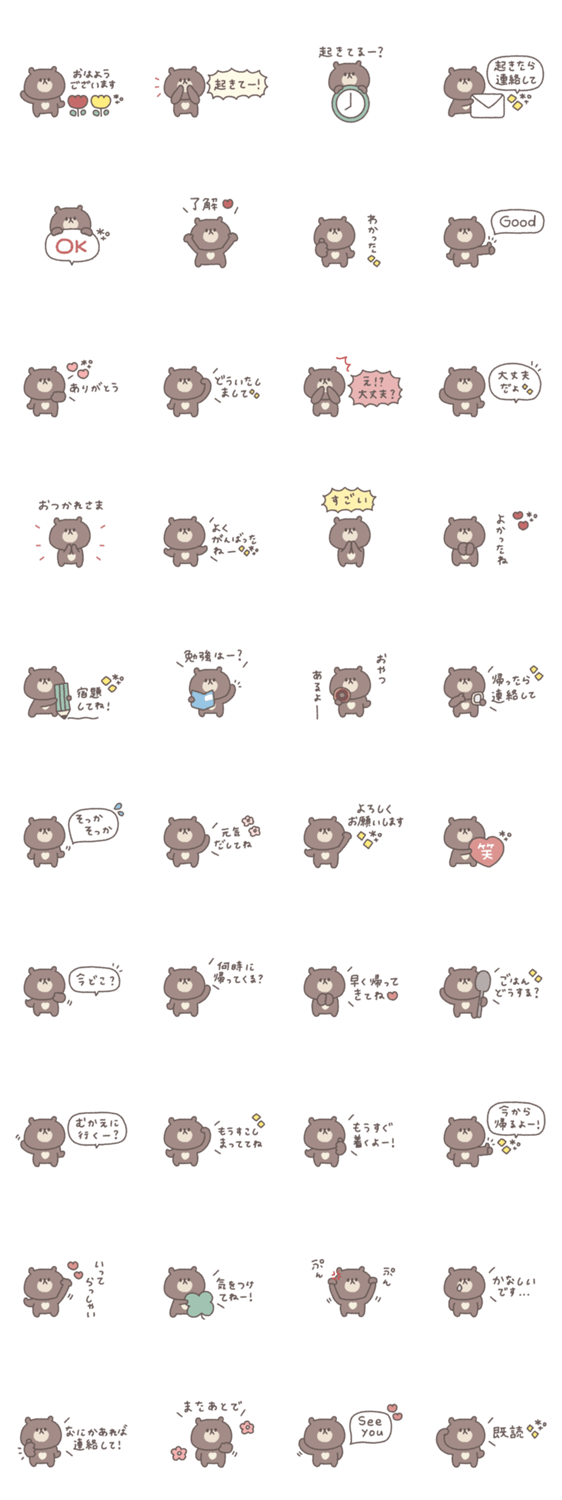 子どもとのやり取りに一つあると便利な小さくてかわいいくまのスタンプです。 くま/大人可愛い/シンプル/あいさつ/吹き出し/くすみカラー/連絡