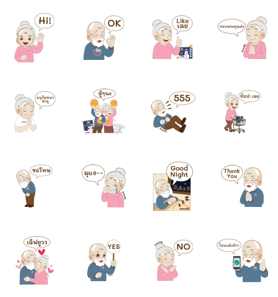 | スタンプ説明 | Grandpa and Grandma with greetings daily life |