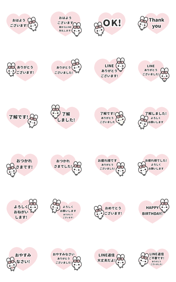 【⬛ピョンピョンラビット❹⬛】【❤️ウサギ✖デカもじ✖ハートの毎日使える大人女子の挨拶や敬語の定番LINEスタンプ❤️】【大人可愛い】【あいさつ】【吹き出し】【©AIIAIIA】