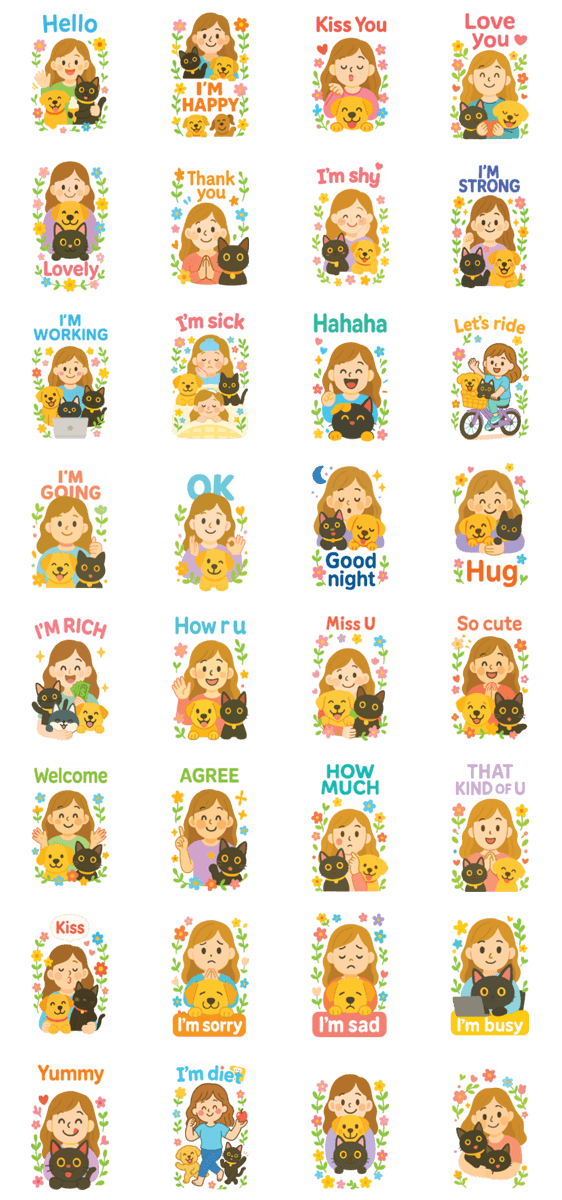 | スタンプ説明 | Dog and Cat Family Sticker for people who love animals These stickers will show up extra large in chats. |