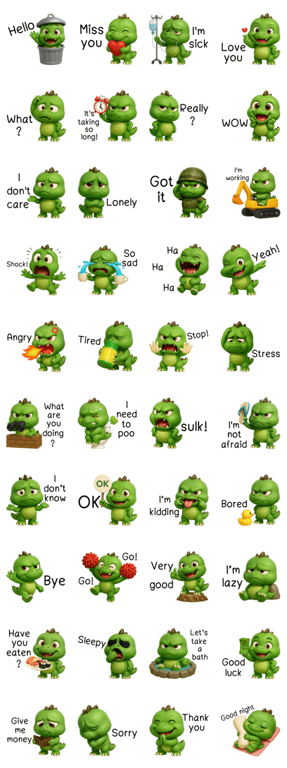 | スタンプ説明 | Cheeky Dinosaur 3D (ENG) |