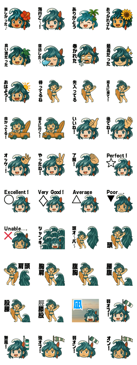 | スタンプ説明 | サーファーの皆さん❗️波空と夏波を宜しくお願いします‼️ |