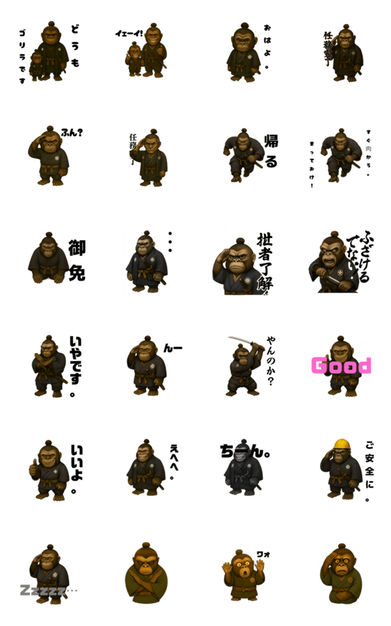 ゴリラ 可愛い 武士 バージョン スタンプ