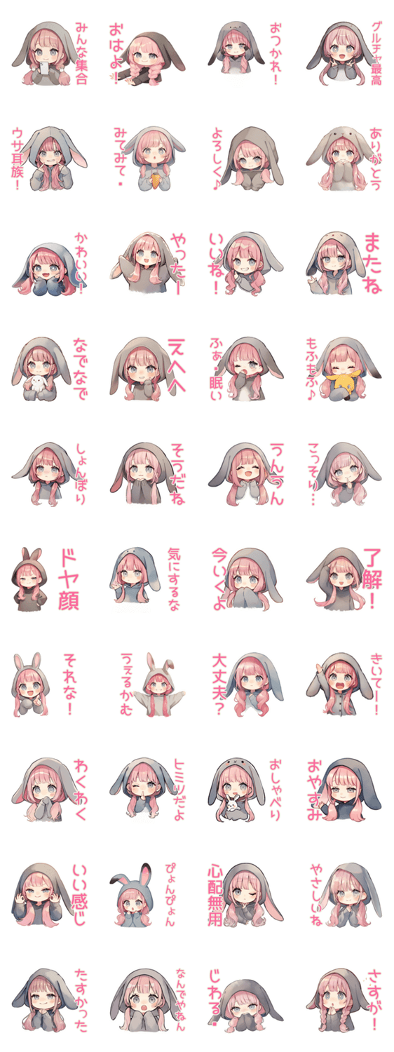 たれ耳うさぎパーカーの女の子★グルチャ -LINEスタンプマニア