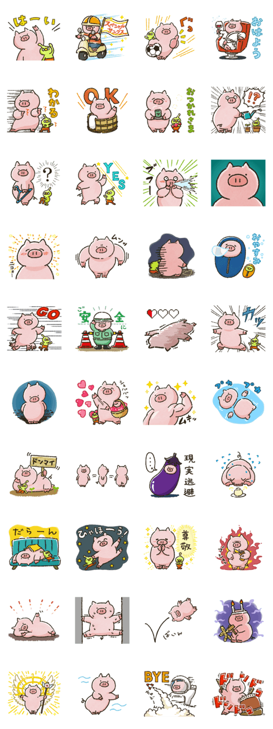 ブタのぶーちゃんとお友達のおコタんのゆる~いスタンプ。 日常会話にどうぞ。