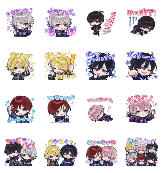 あいみーむメンバー(ゆうま・そう・サク・あき・ゆう・カケル)の公式LINEスタンプの第一弾が登場!これであなたもみーむずに!!