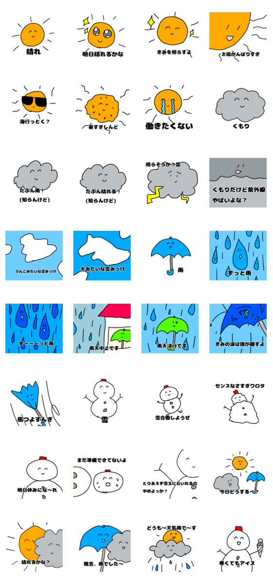 指で描いたゆるいお天気達。