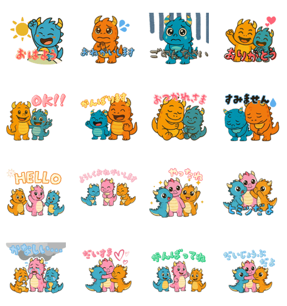 でこぼこ怪獣familyの日常スタンプです。やんちゃな弟と優しいお兄ちゃんのスタンプで、毎日の会話をもっと楽しくしよう!
