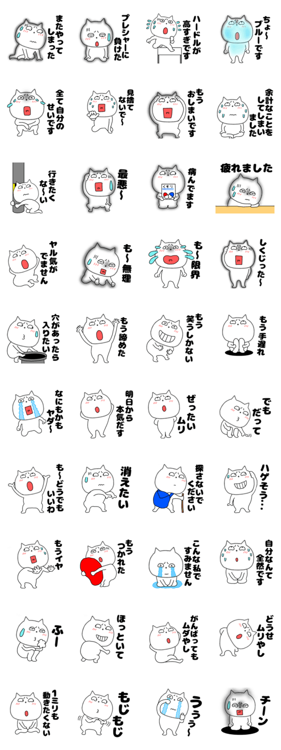 スタンプ説明 以外と使える可愛いネコのネガティブスタンプです