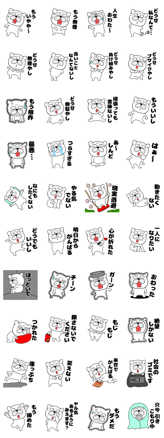 ネガティブなぶさいく犬55 -LINEスタンプマニア