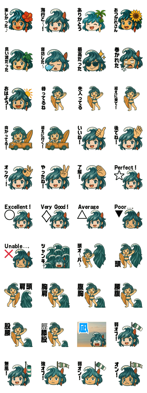 | スタンプ説明 | サーファーの皆さん❗️波空と夏波を宜しくお願いします‼️ |