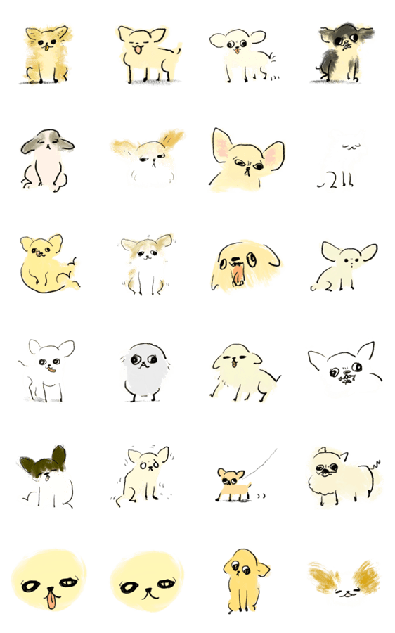 チワワたちをがんばって思い出して描き、スタンプにしました、手描きの風合いが持ち味です