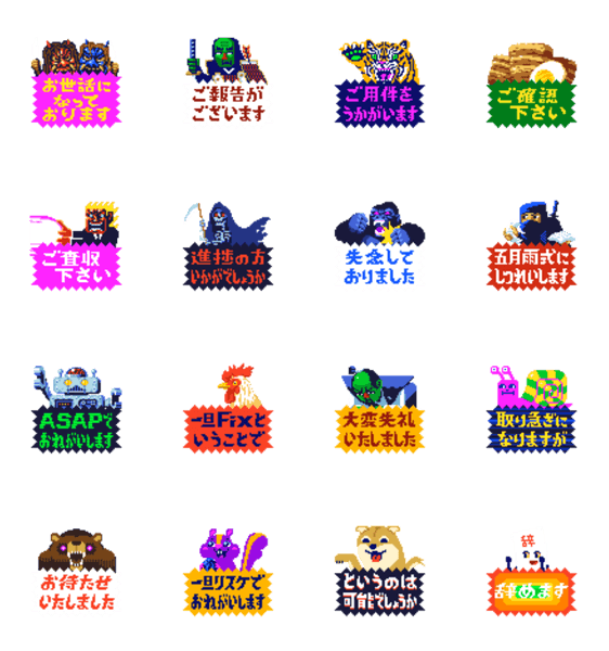 最新のビジネスワードであなたの業務をサポートする、エグゼクティブクオリティのスマートなアニメーションスタンプです。素晴らしきビジネスライフを。
