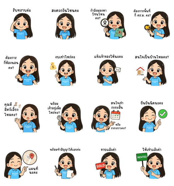 | スタンプ説明 | Sticker set forThai real estate agents! Perfect for property rental and sales conversations.Practical, professional, and cute for daily use. |