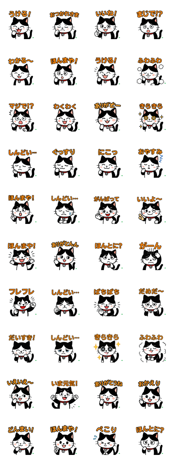 今日もハチワレ、感情全開!喜怒哀楽をかわいく代弁。日常の気持ちをゆるっと届ける、使いやすくて楽しいスタンプです。