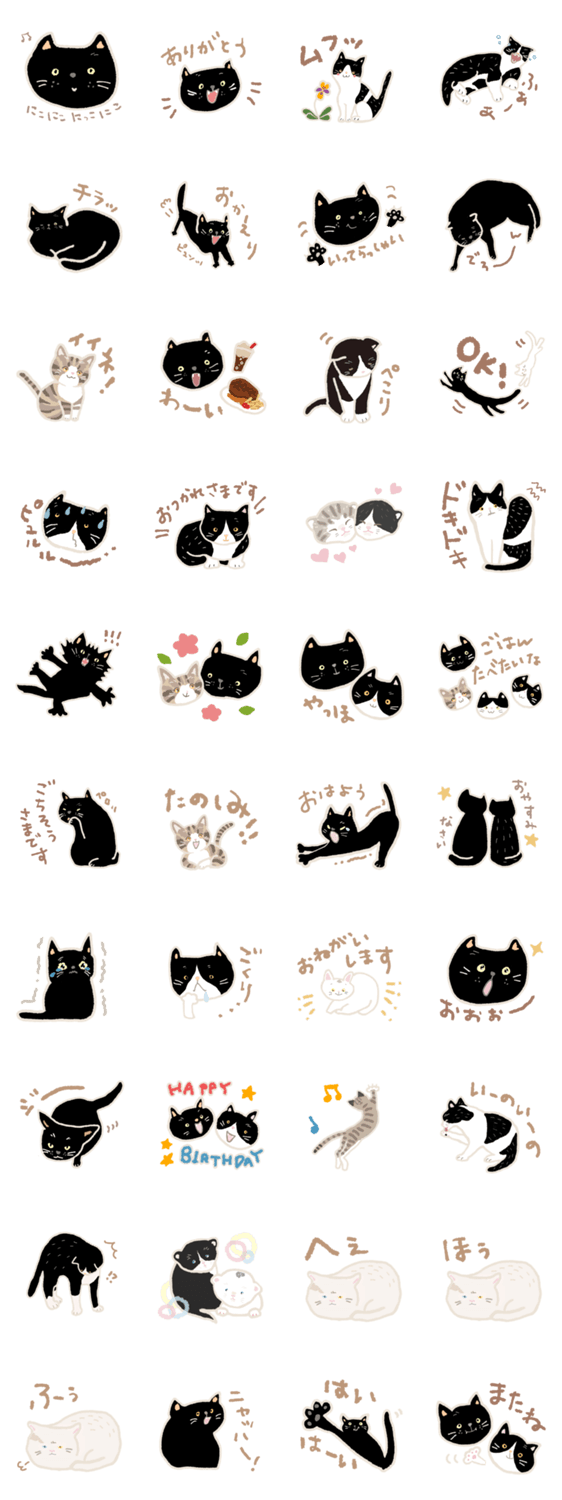 白ネコのあいうえお・・・ってるスタンプ