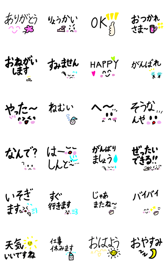 ほっこりかわいい、手書き文字と手描きイラストのスタンプです。 あいさつや感謝など、毎日の会話に癒しを届けます♪