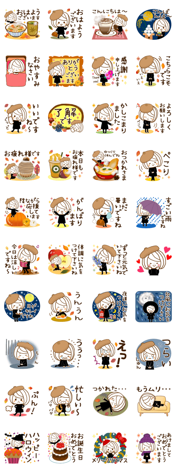 いつもやさしくふんわり返信♡大人の気づかいができる秋冬の日常スタンプです♪挨拶、敬語多めで使う相手を選びません☆/ハロウィン/十五夜/台風/誕生日/クリスマス/お正月