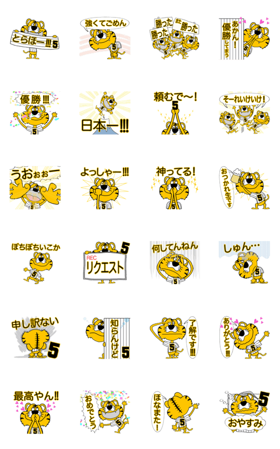 虎ファン/虎党/トラ好き/野球/背番号5/5/阪神地区/甲子園地区/関西弁の方の為のタイガー/スタンプ/TIGERsticker。とらほー!アレ!優勝!日本一まで応援しテル!☻edacchi