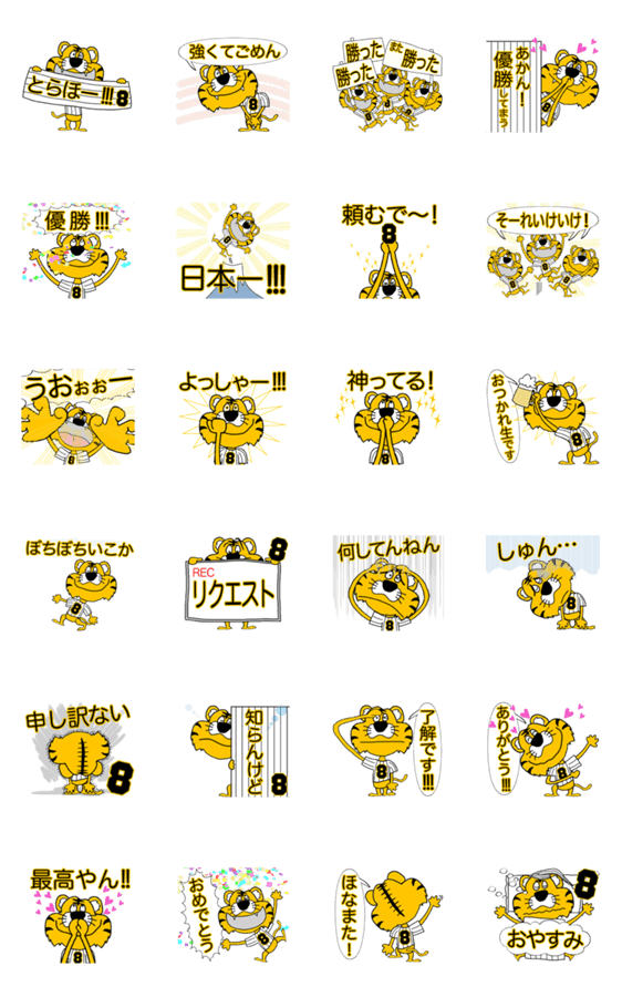 虎ファン/虎党/トラ好き/野球/背番号8/8/阪神地区/甲子園地区/関西弁の方の為のタイガー/スタンプ/TIGERsticker。とらほー!アレ!優勝!日本一まで応援しテル!☻edacchi