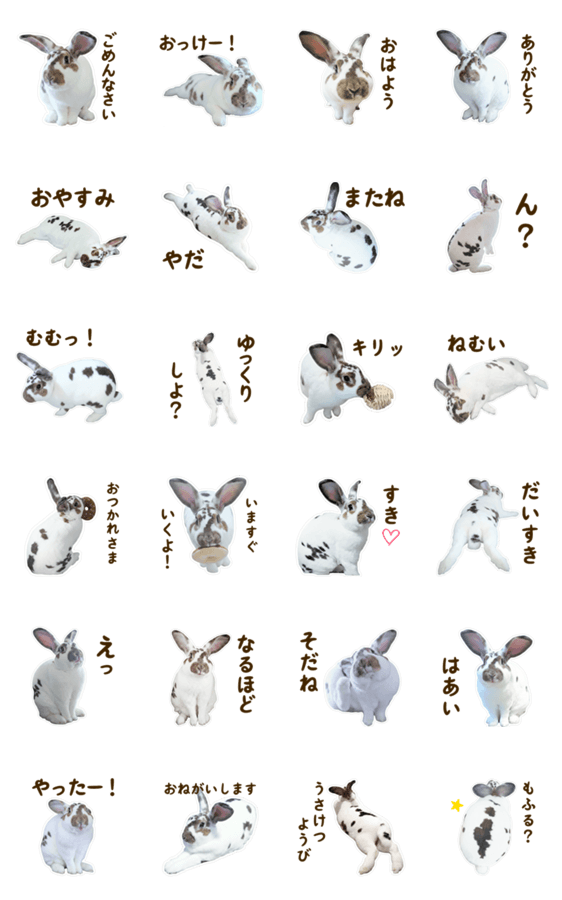 中型うさぎのスタンダードレッキスのスタンプです。 もっちりフワフワのマシュマロうさぎで和んでください♪