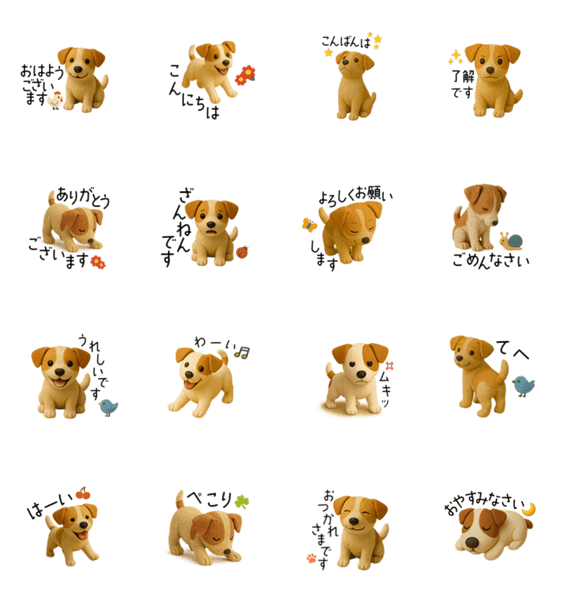 粘土で作った「ねんどわんこ」のスタンプ。毎日のあいさつにぴったり!