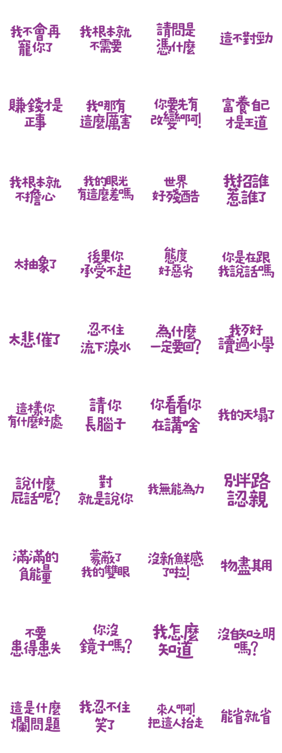 | スタンプ説明 | Someone, carry this person away. Purple 20 |