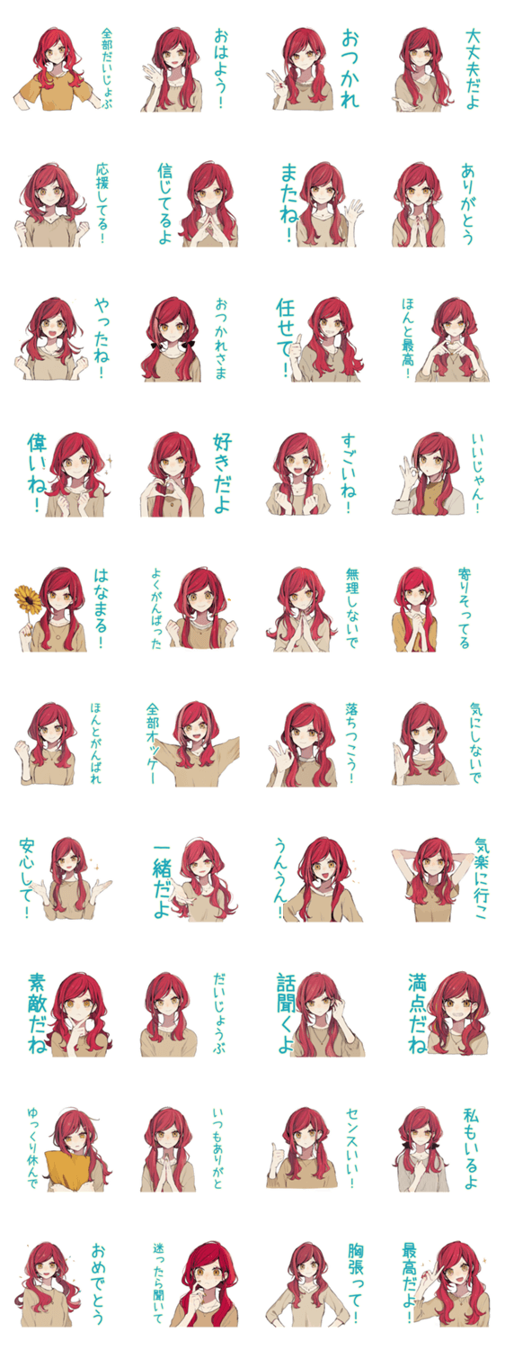 普段使いにぴったりのゆるい全肯定スタンプ!赤髪女子/毎日/応援/ポジティブ/かわいい/女子/優しい