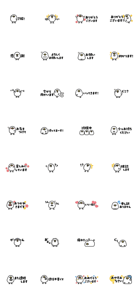 省スペースで使える可愛い鳥さんのスタンプです。 家族や友人の連絡などに。
