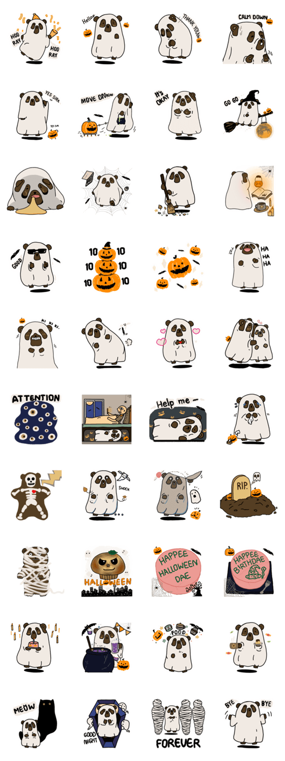 | スタンプ説明 | Chocolyn is a sleepy-faced brown bear. On Halloween, he gets possessed by a little ghost. He spends the whole day with his friends. |