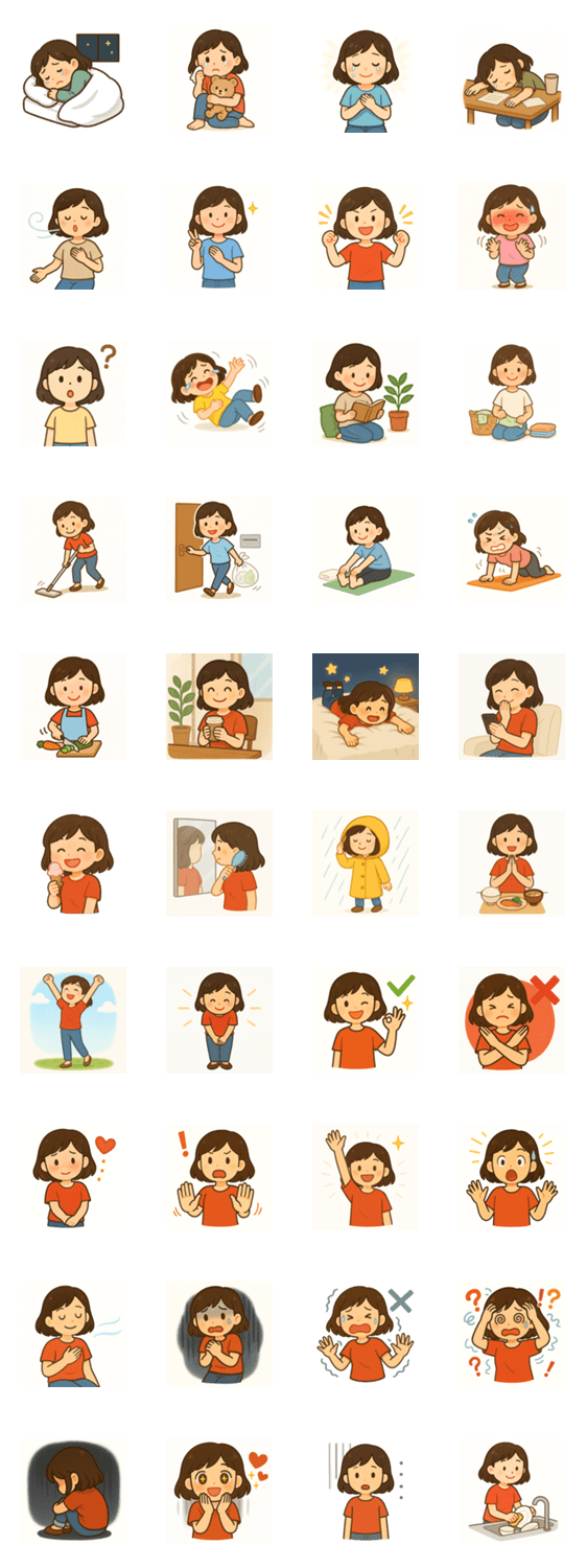 仲良しの友達や家族に近況や気持ちをかわいく伝えるスタンプ。女性らしい優しいタッチで毎日の会話を彩ります。