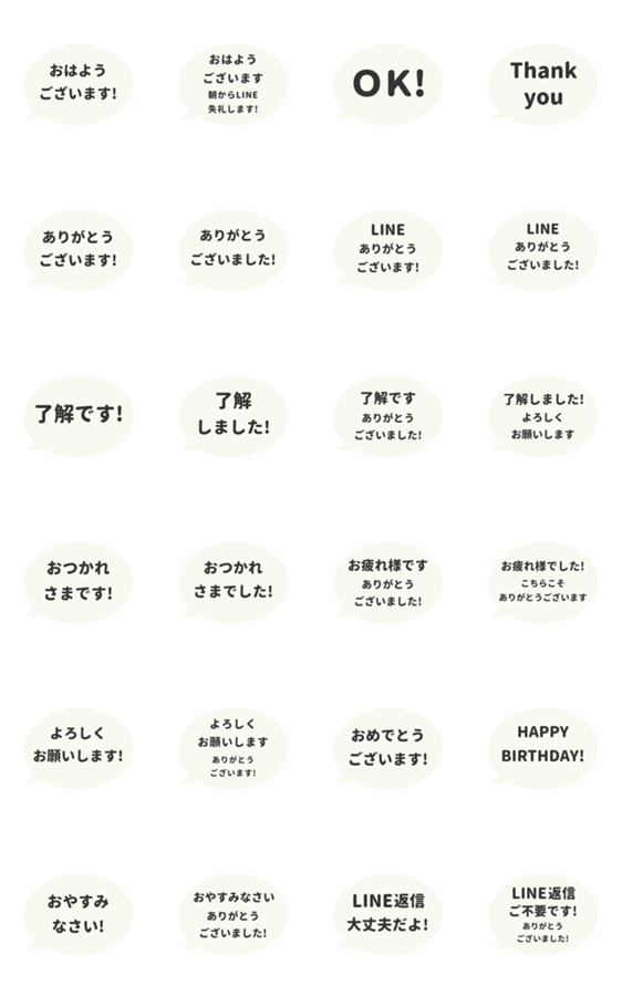 【⬛⏹楕円の吹き出し✖モノトーンの大人シンプルで控えめな挨拶や敬語の定番LINEスタンプ★⬛】【仕事】【丁寧】【ふきだし】【日常】【優しい】【あいさつ】【©AIIAIIA】