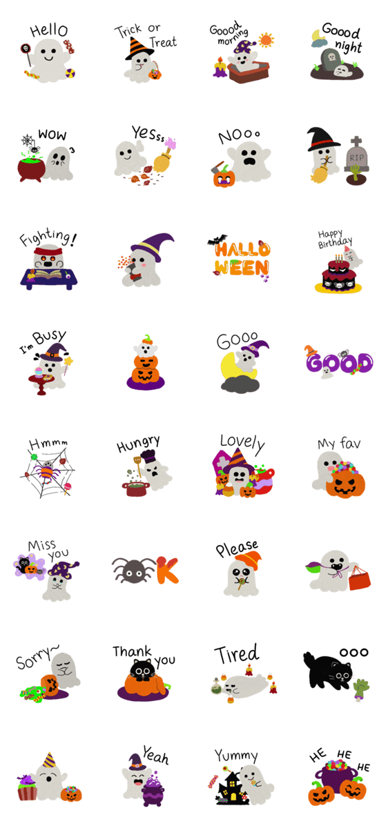 | スタンプ説明 | Cute ghost stickers for a happy Halloween vibe! |