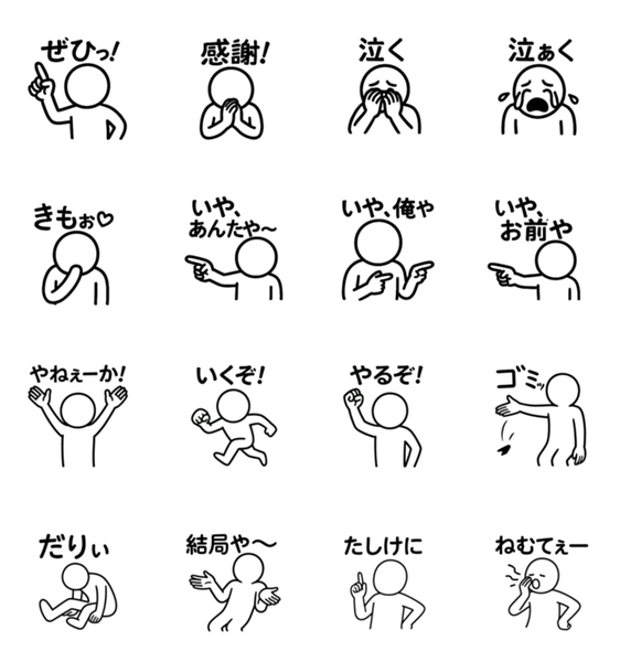 日常会話で使えるリアクション満載!泣きたい時もツッコミたい時も、このスタンプで感情を届けます。