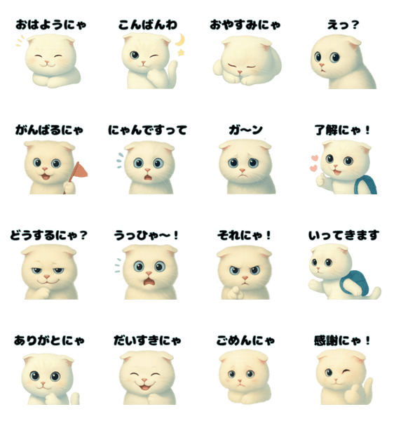 猫のレンが、日常でよく使う言葉や気持ちをかわいく表現しました。挨拶から感謝まで、トークがもっと楽しくなるスタンプです。