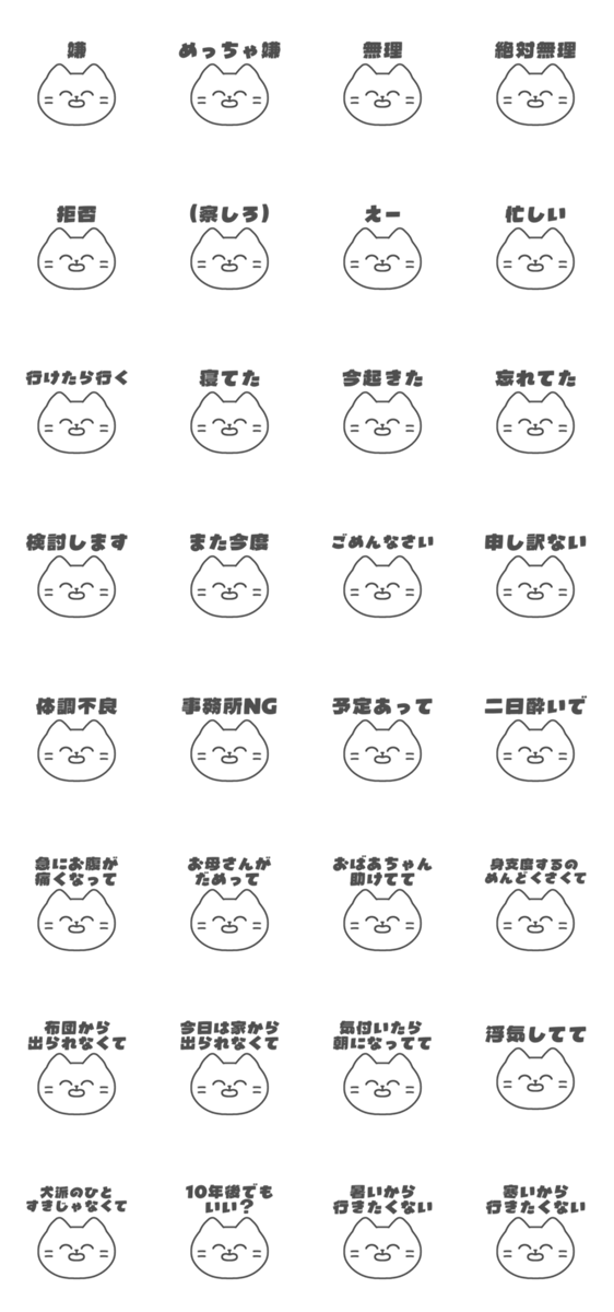 何かを断りたいとき、笑顔のねこちゃんたちに代弁してもらいましょう。