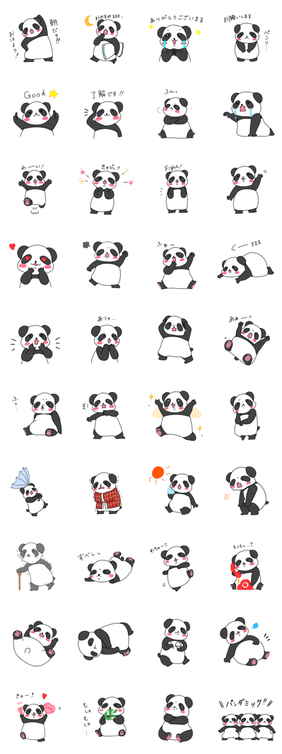 ほっこり癒し系のぱんパンダが、あなたのトーク画面に登場! 挨拶からリアクションまで、毎日使える便利なスタンプのセットです!