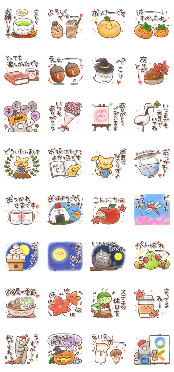 色々な動物や食べ物、お花や雑貨で織りなすあったかい世界♪絵本のような可愛いほんわかなスタンプ第5弾です。