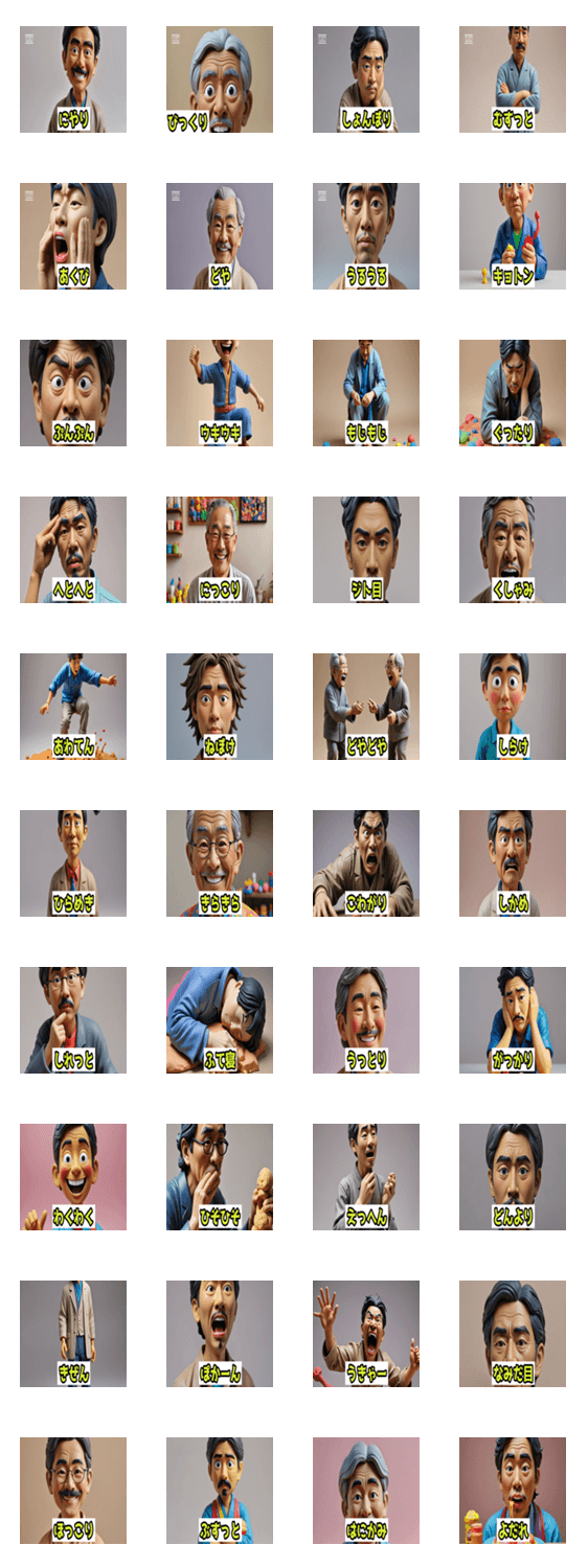 喜怒哀楽がとまらない!にやり、ガーン、わくわく、しょんぼり…感情がダダ漏れなおじさんがあなたのトークを盛り上げます。日常会話からネタ使いまで便利なスタンプです。
