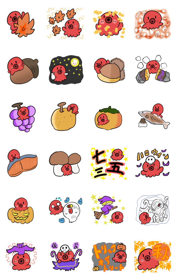 タコと秋のスタンプ -LINEスタンプマニア