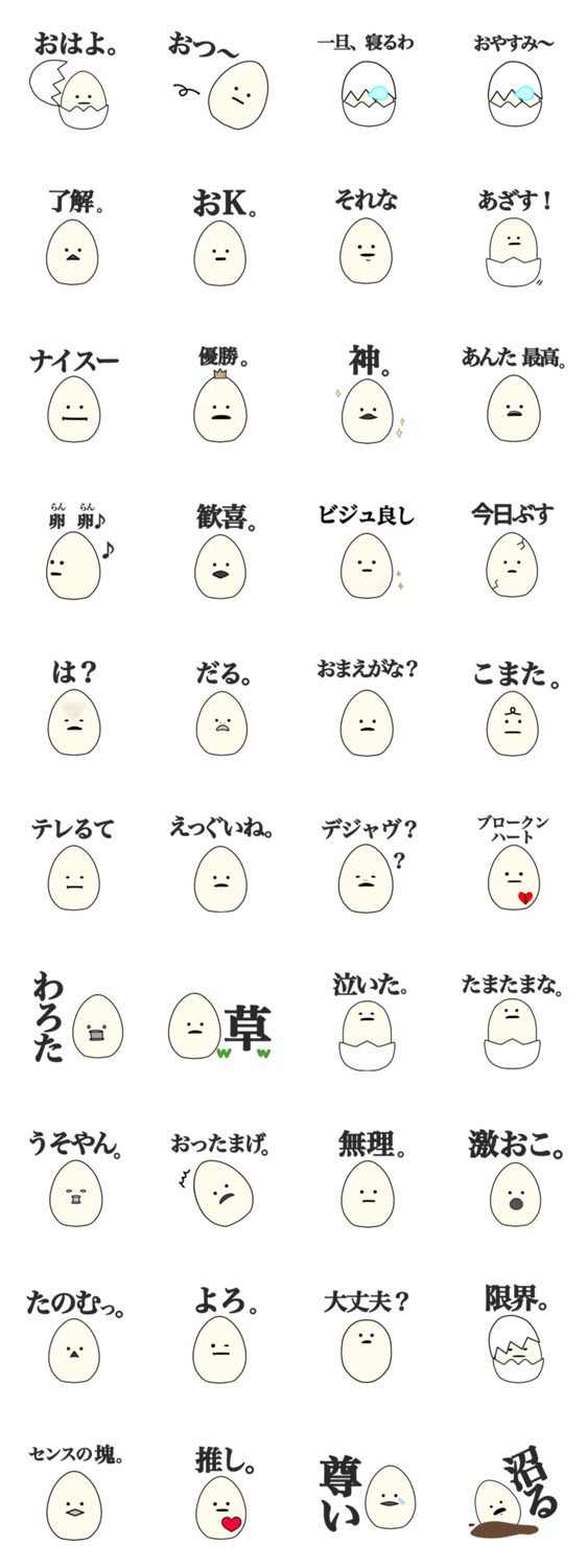 卵ってさ。喋るんです。卵が放つシュールな一言は、面白くて可愛い/男女兼用/今の気分を卵がお届け。友達との日常会話にピッタリ!