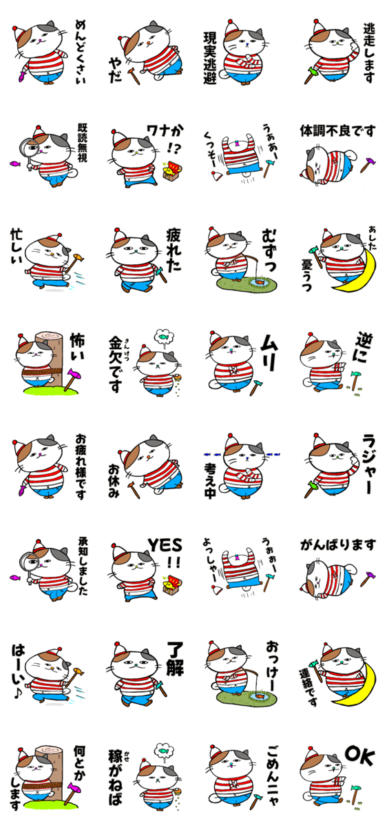 日常|使える|旅|ネガティブ|ポジティブ|ふとっちょ|ギャグ|ストライプ|絵本|無気力|小学生|中学生|高校生|目つきの悪い|ウォーリー|人気|でぶねこ|三毛猫