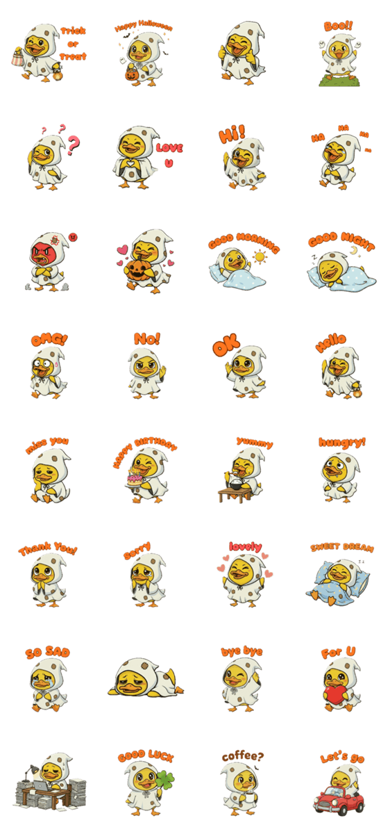 | スタンプ説明 | Tookky Duck in a cute little ghost costume for Halloween. |