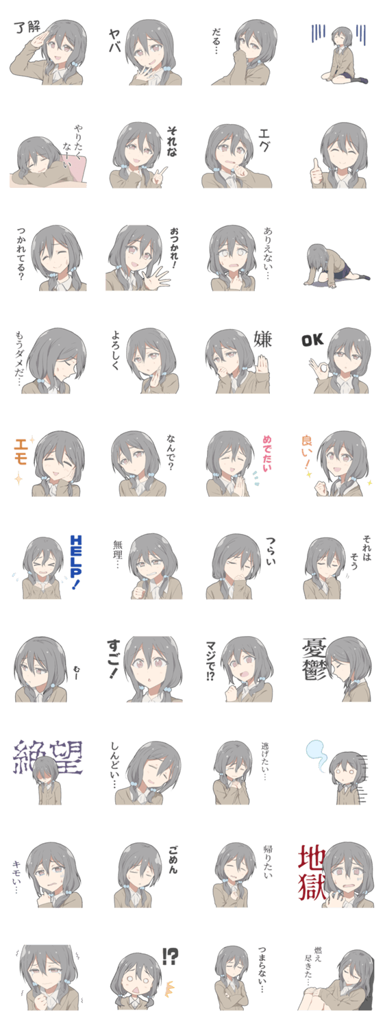 ちょっとネガティブな女の子の、日常的に使えるシンプルでかわいいスタンプです。マイナスなワード多め。 お友達やご家族はもちろん、お仕事などでもぜひどうぞ。
