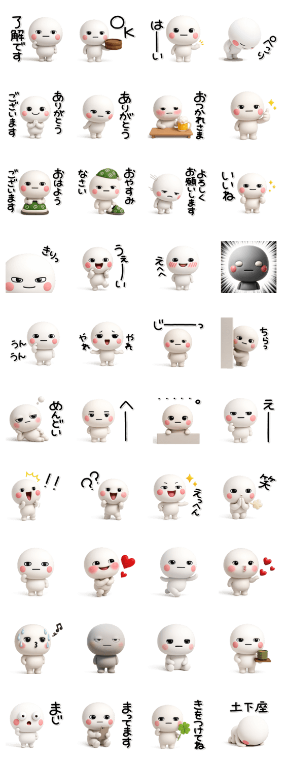 | スタンプ説明 | 目が特徴的な子たちのスタンプです。みんなでずっと使える内容を揃えましたのでスタンプ初心者の方にもオススメです。 |