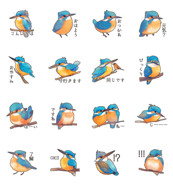 スタンプ説明 毎日使えるシンプルでかわいいカワセミのスタンプ。