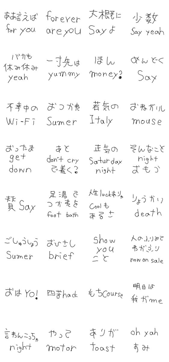 | スタンプ説明 | 煽り、ネタ、ギャグ、おもしろい、文字スタンプ、手書き |