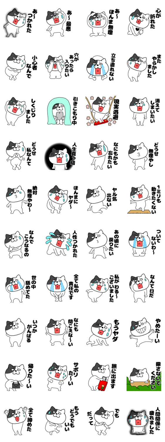 スタンプ説明 以外と使える可愛いネコのネガティブスタンプです