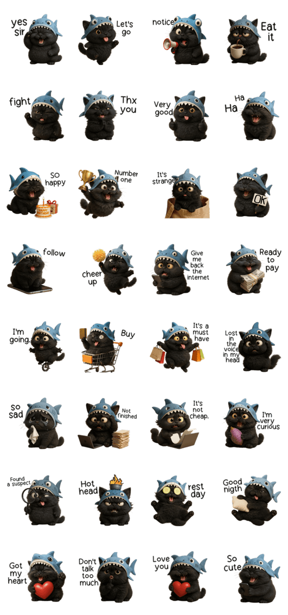 Little Shark Head Black Cat EN -LINEスタンプマニア